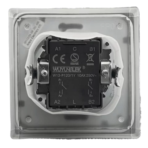 📋 Szerelvény típusa: süllyesztett 102-es, kétpólusú kapcsoló, kültéri villanykapcsoló