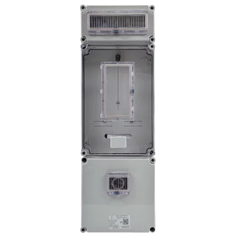 Robusztus kialakítása, IP65-ös por és vízállósága, valamint IK08-as ütésállósága révén beltéren és kültéren egyaránt biztonságos mérőhelyet kínál akár 3×80 A ig (módosítás szükséges hozzá). Üvegszál erősítésű poliészter ház, UV stabil polikarbonát tető és lakatolható, plombálható fedél gondoskodik a tartós védelemről, az illetéktelen hozzáférés elleni „kizárólagos őrizet” követelményeinek megfelelően.