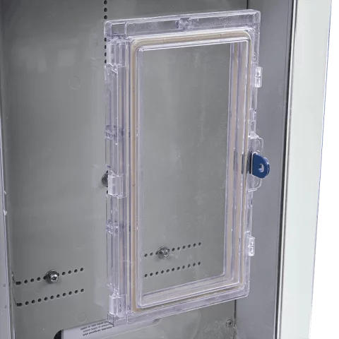 1. PVT 3045 Fm mérő modul: 300mm x 450mm x 170mm szekrény, átlátszó fedéllel, lakatoló füllel
