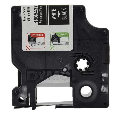 DYMO D1 kazetta Vinyl 9mmx5,5m fehér betűk fekete szalag