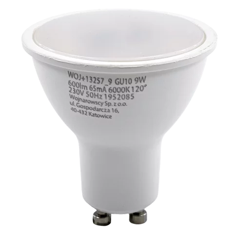 A SPECTRUM LED WOJ+13257_9 9W hideg fehér (6000 K) fénye ideális választás hétköznapokra és munkához. Széles, 120°-os fényszórása és magas fényereje egységes, árnyékmentes alapfényt biztosít, ezért kiváló általános világításhoz nappaliban, konyhában, folyosón vagy irodában. GU10 foglalatú, 230 V hálózatról működő LED; nem dimmelhető.