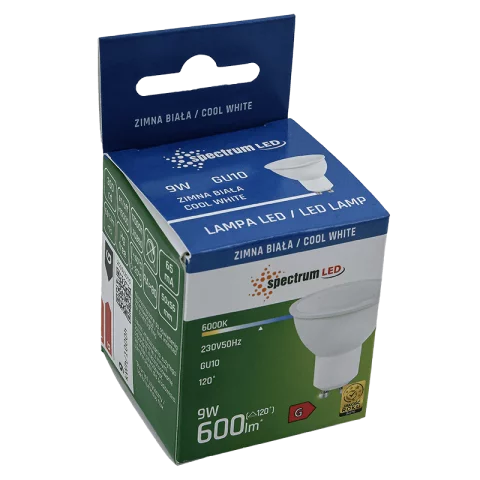 GU10 LED Spot Izzó 9W 6000K hideg fehér 600lm 120° Spectrum WOJ13257