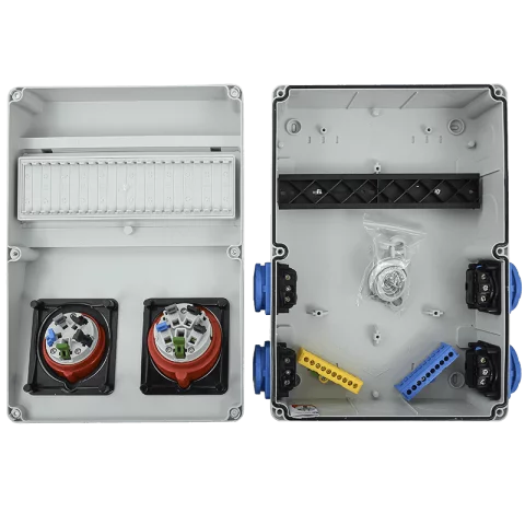 Ez a szerelt ipari doboz kiválóan alkalmas különböző teljesítményszintű fogyasztók egyidejű ellátására, miközben megbízható védelmet és rendezett csatlakozási pontot biztosít a villamos hálózaton.