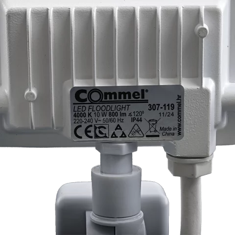 LED Reflektor Mozgásérzékelővel 10W 4000K természetes fehér 800lm IP44 Fehér Commel 307-119.