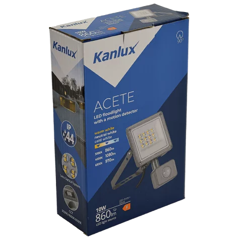 LED Reflektor Mozgásérzékelővel 10W CCT Állítható 860lm IP44 Szürke Kanlux ACETE 10W CCT SE GR.