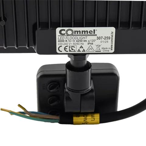 LED Reflektor Mozgásérzékelővel 50W 4000K természetes fehér 4250lm IP44 Fekete Commel 307-259.