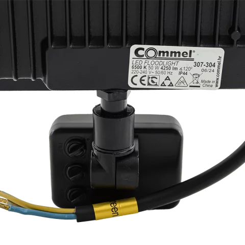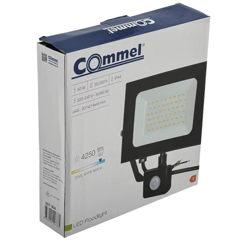 LED Reflektor Mozgásérzékelővel 50W 6500K hideg fehér 4250lm IP44 Fekete Commel 307-304.
