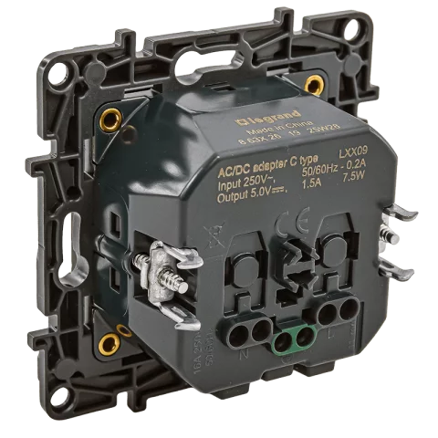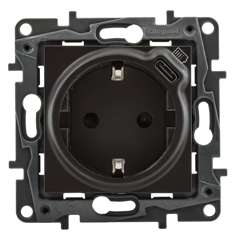 Legrand Niloé Step Dugalj 2P+F + USB-C konnektor töltőaljzat GYV rugós bekötés fekete 863526.