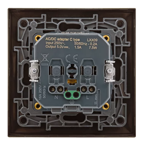 Süllyeszthető dugalj 2P+F konnektor + USB-C töltővel, beépített tápegységgel, gyermekvédelmi zsaluval , max. 16A 230V áramerősségig (a dugalj esetében).