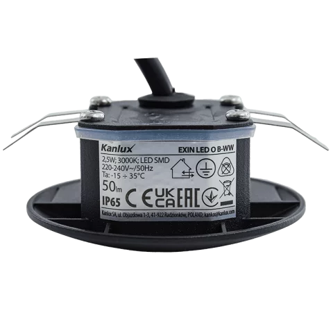 Lépcsővilágítás 2,5W 3000K 50lm Fekete Süllyeszthető Kerek IP65 Kanlux EXIN LED O B-WW.