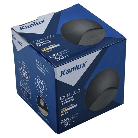 A Kanlux EXIN LED O B-WW (39121) kör alakú, fekete keretes, falba süllyeszthető lámpatest, amely meleg fehér (3000 K) fénnyel, diszkrét, elegáns megjelenéssel illeszkedik modern és klasszikus környezetbe is. Közvetlen 230 V hálózatról működik, így nincs külön tápegység – a szerelés gyors: a szabványos Ø60 mm szerelődobozba illeszkedik. IP65 védettségének és alumínium házának köszönhetően por- és vízsugár-álló, ezért a bejáratoknál, kültéri lépcsőknél, teraszoknál is biztonságosan használható.
