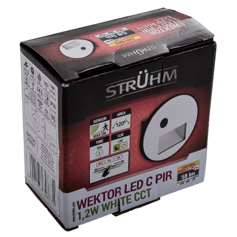 Mozgásérzékelős Lépcsővilágítás 1,2W CCT állítható színhő 58lm Fehér Süllyeszthető Kerek Strühm.