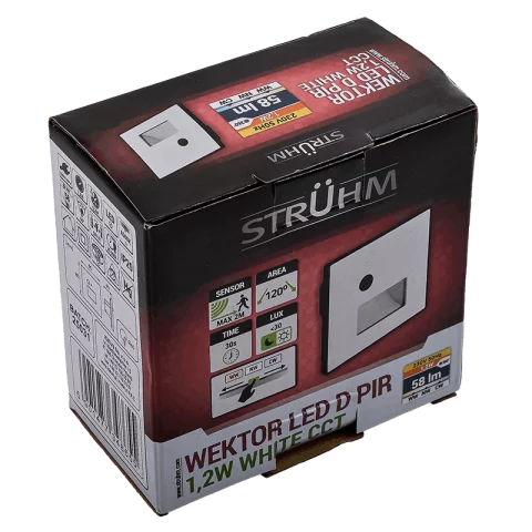 Mozgásérzékelős Lépcsővilágítás 1,2W CCT állítható színhő 58lm Fehér Süllyeszthető Négyzet Strühm Wektor.