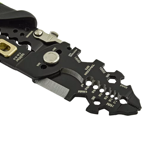 3. ⚡ Csupaszoló – jelölt furatokkal 1–6 mm² vezetékekhez, tiszta blankolás.
