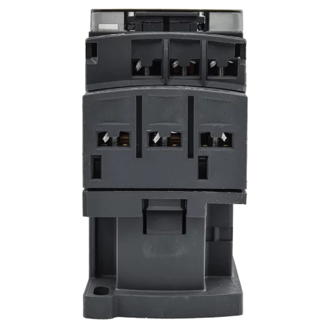 Schneider Electric LC1D12P7 típusú TS 35-ös kalapsínre pattintható mágneskapcsoló-kontaktor, 3 záró (NO) főérintkezővel +1 nyitó (NC) segédérintkezővel, 12A-es terhelhetőséggel.