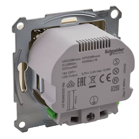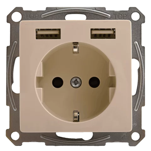 Schneider SEDNA Design Dugalj 2P+F + 2xUSB-A konnektor töltőaljzat csavaros bekötés bézs SDD112052.