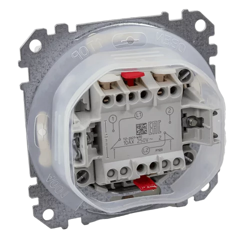 A kétpólusú kapcsoló két záró érintkezővel van szerelve, ezért egy áramkör (L-N) mindkét pólusát egyszerre tudja ki/be kapcsolni.