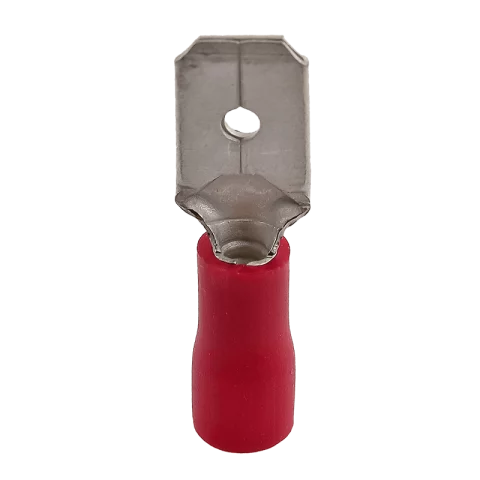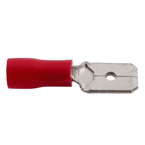 Szigetelt rátolható csúszó saru (csap) – 6,35×0,8 mm, 0,5-1,5 mm², piros
