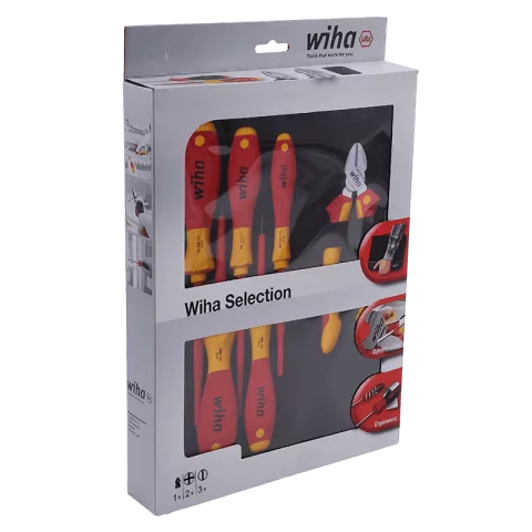 A Wiha 33969 villanyszerelő készlet egy kompakt, mégis professzionális alapfelszerelés, amely pontosan azokat a szerszámokat tartalmazza, amelyekre a mindennapi villanyszerelési munkáknál a leggyakrabban szükség van. Az 5 db SoftFinish® szigetelt csavarhúzó és a Professional electric oldalcsípő együtt lefedik a kapcsolók, dugaljak, elosztók és készülékek szerelésének döntő részét.