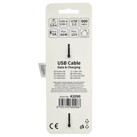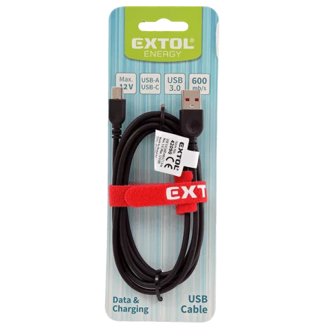 USB kábel Type-C fejjel 1,5m Telefon töltő kábel USB-A USB-C adatkábel fekete Extol Energy.